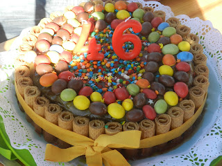 Este foi mais um bolo de aniversário repleto de guloseimas para o guloso cá de casa!